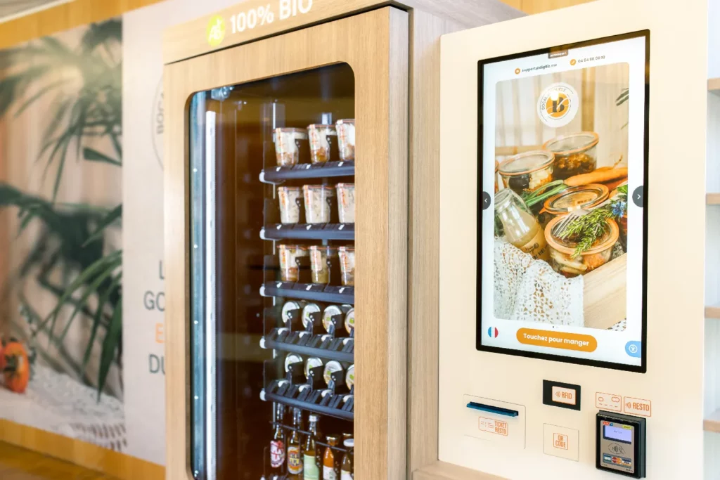 Nos frigos et distributeurs connectés offrent une restauration qualitative et responsable, accessible à tout moment et sans infrastructure lourde.